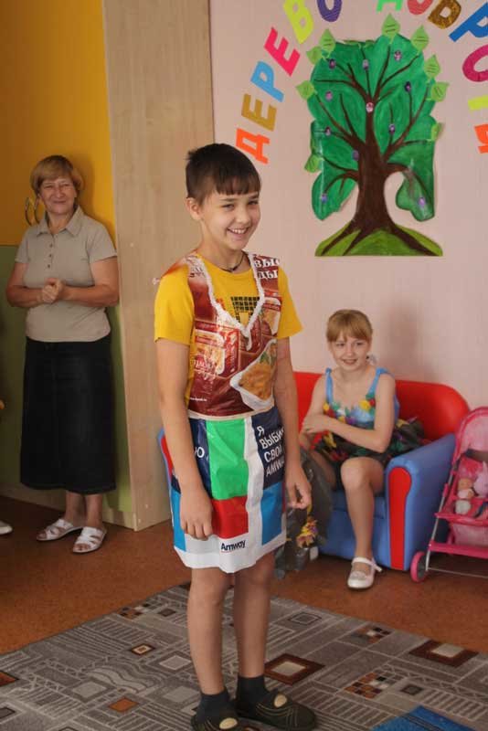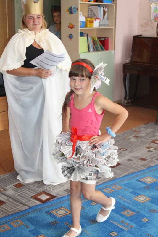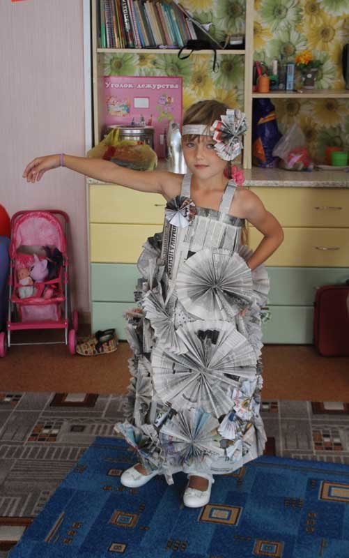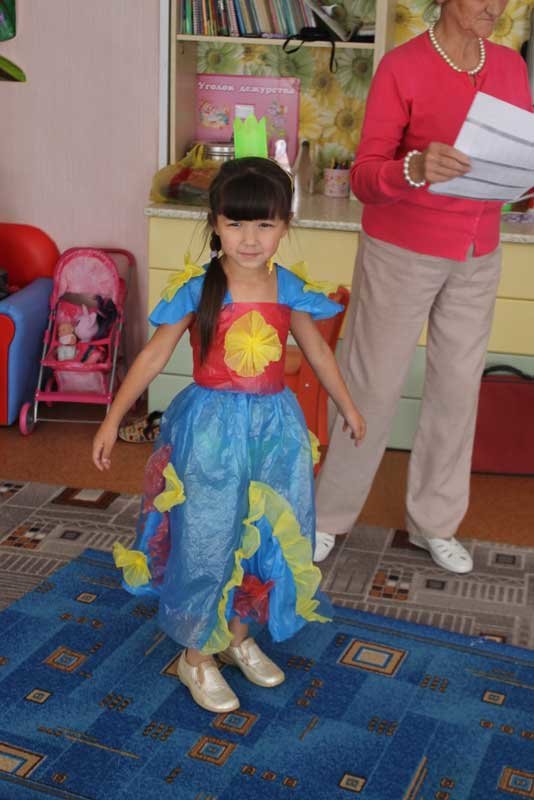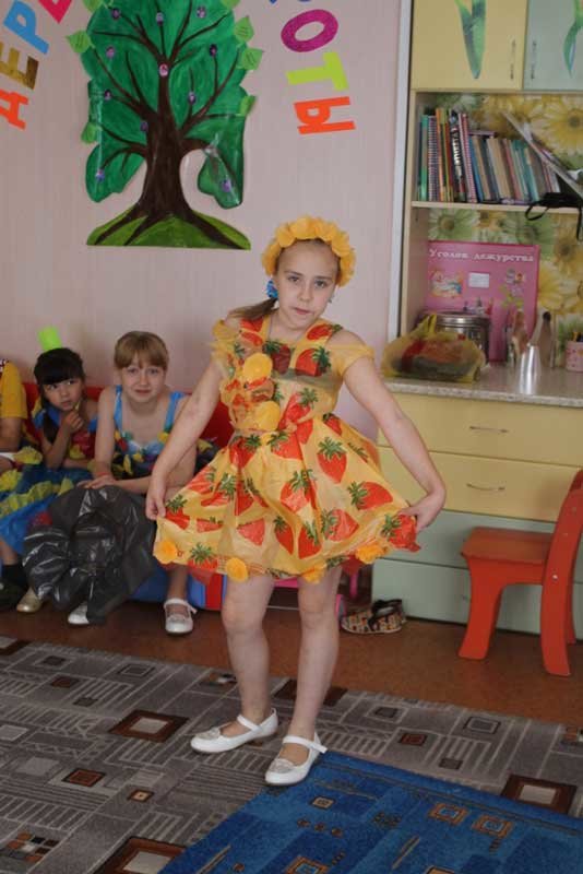 Замечательные костюмы из подручных средств (пакеты для мусора, газеты, банты, мешки и многое другое) были представлены на суд зрителей.