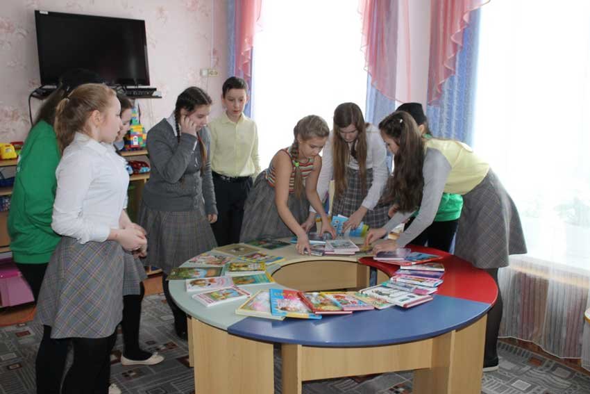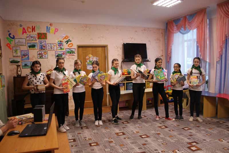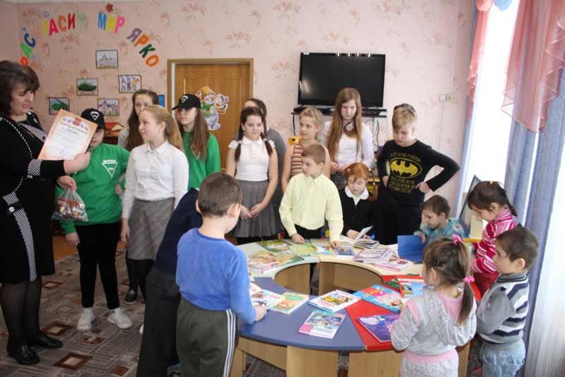 В ходе акции учащиеся школ принесли в дар учреждению познавательные, справочные, детские энциклопедии и книги.