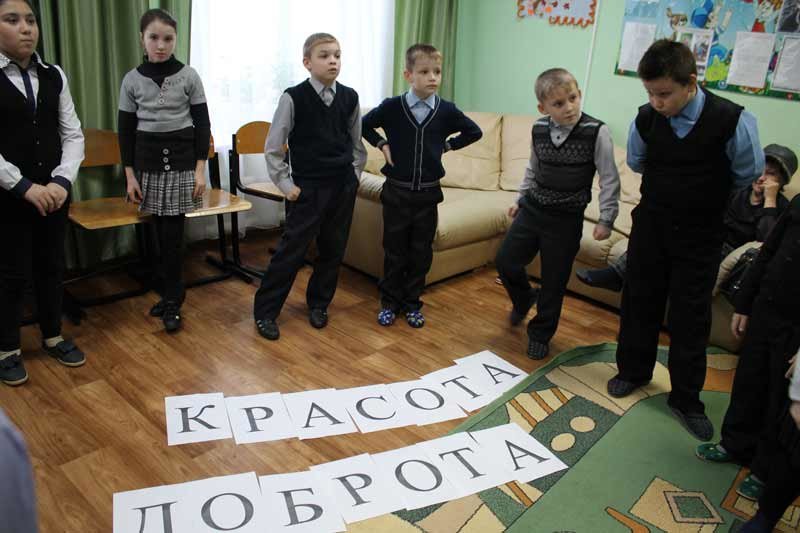 В конце встречи дети собрали из букв, как из осколков стекла, слова «ДОБРОТА», «КРАСОТА», которых так иногда не хватает и взрослым и детям.