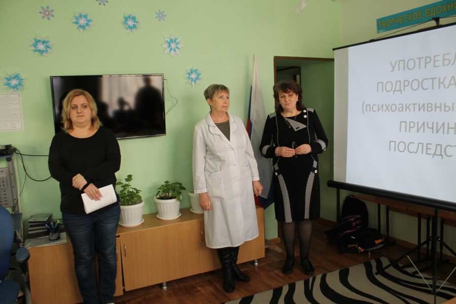 Первое занятие с родителями (семинар – практикум) в рамках клуба было посвящено очень актуальной на сегодняшний день теме «Употребление подростками ПАВ. Причины и последствия употребления». В работе семинара приняли участие родители детей-подростков, проживающих в центре, а также сами дети. С интересной и доступной для понимания и взрослых и детей лекцией на злободневную тему выступила детский врач –педиатр Собинской ЦРБ Ефименко Е.Р. Она ответила на все вопросы родителей и ребят, которые возникли у них в ходе лекции.