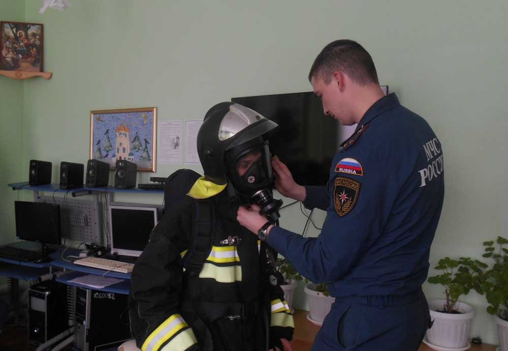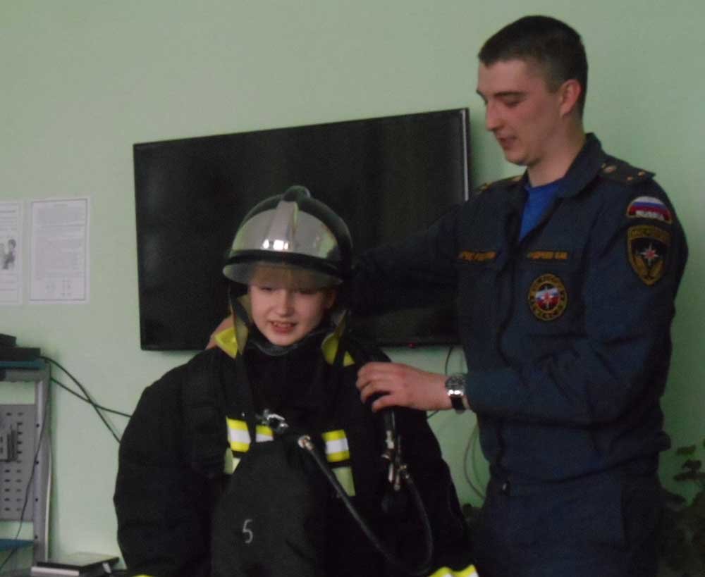 Воспитанники с большим интересом слушали рассказ о профессии пожарного, задавали вопросы. В практической части каждый узнал о боевой форме пожарного и имел возможность примерить её на себя.