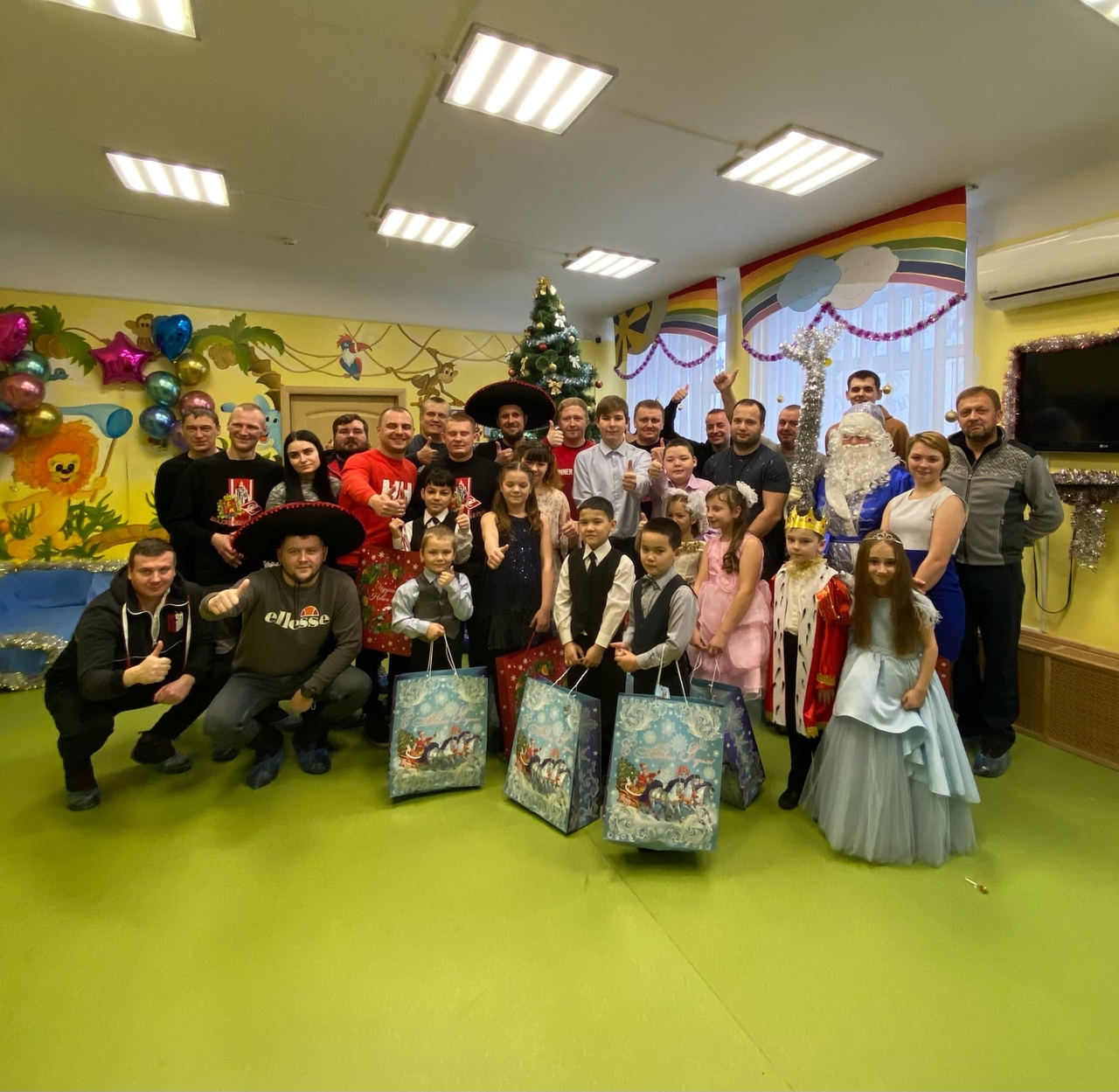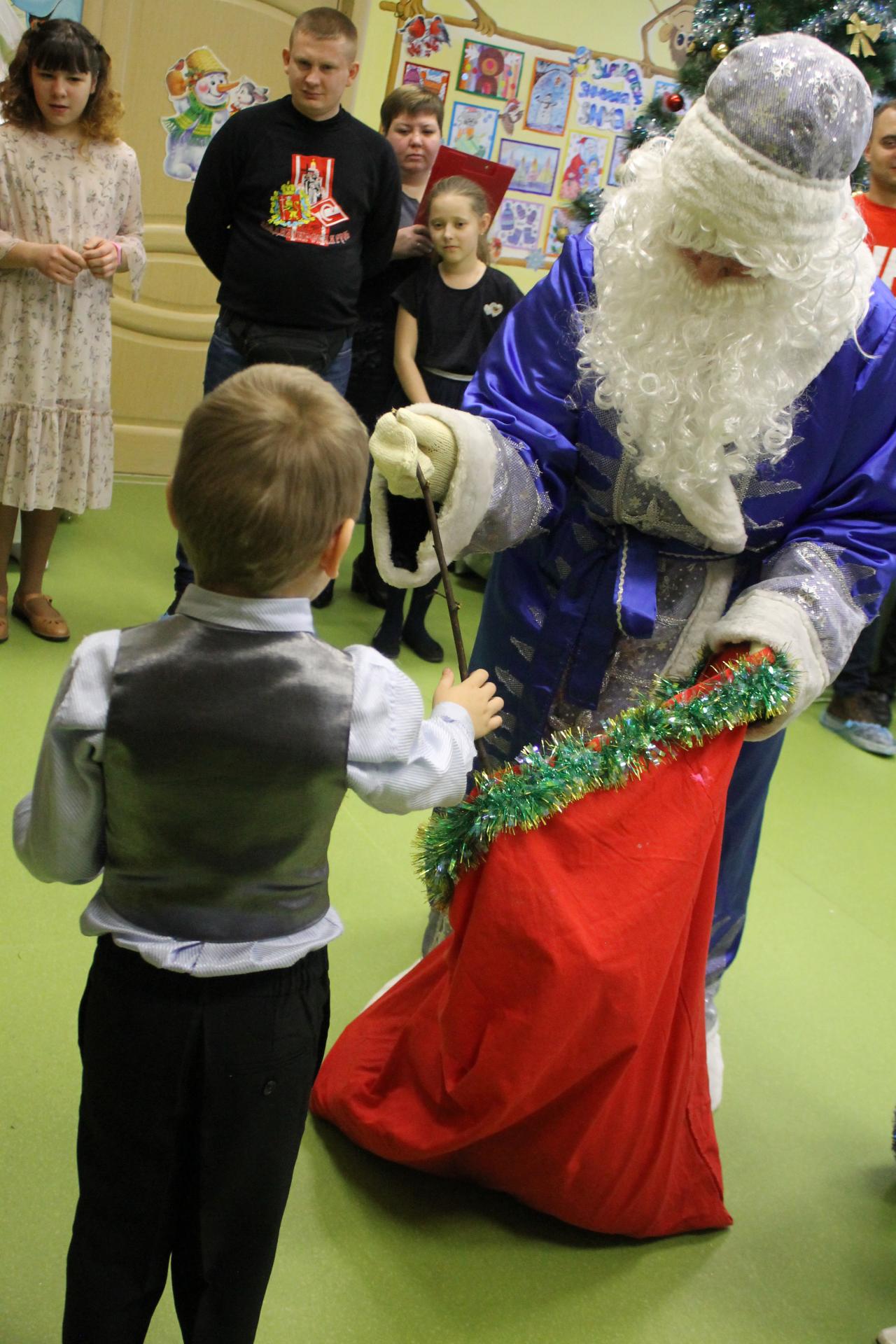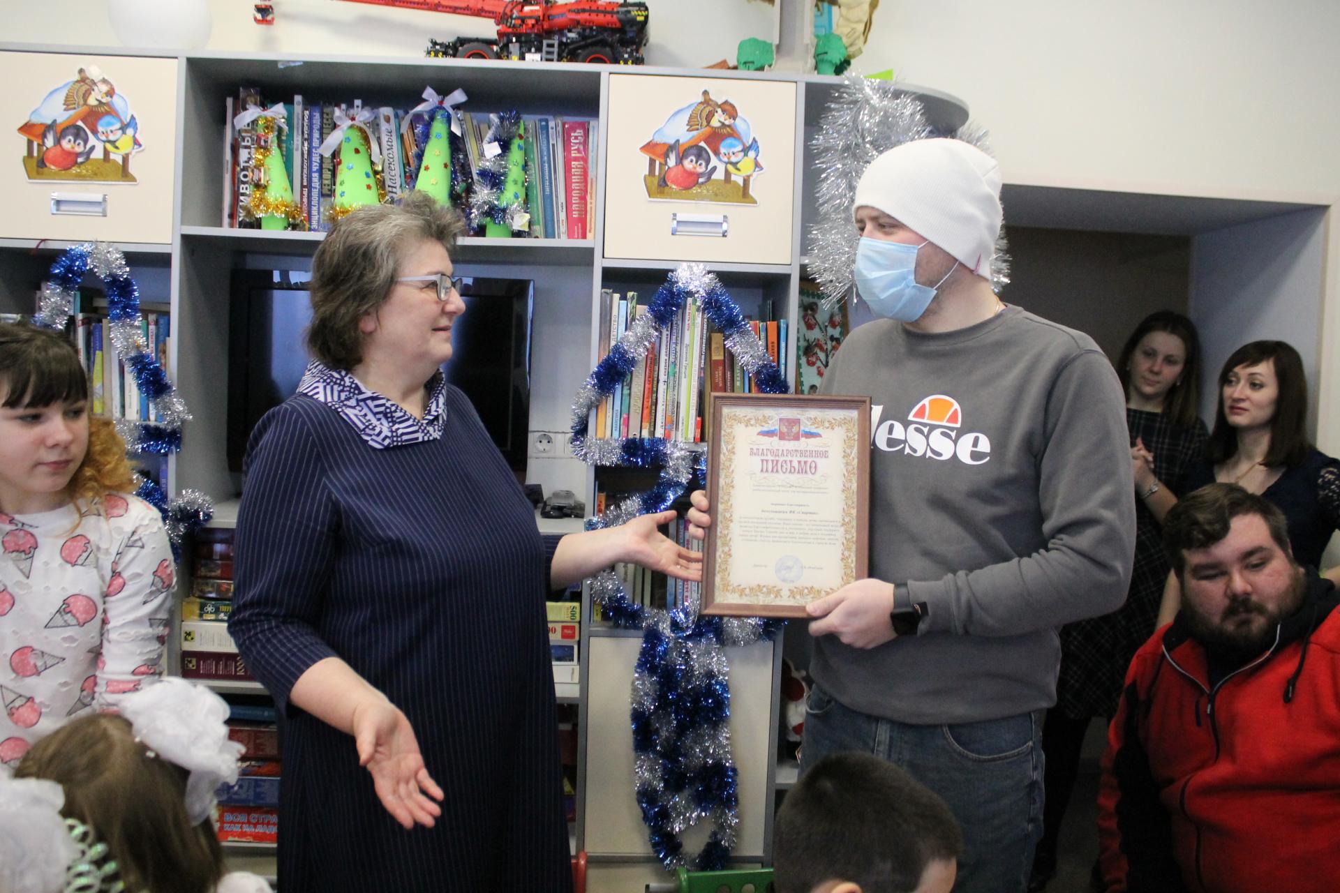 25 декабря 2021 года в гости к воспитанникам Собинского социально- реабилитационного центра для несовершеннолетних приехали давние добрые друзья- болельщики ФК «Спартак». И взрослые, и дети стали активными участниками праздника «Чудеса под Новый год». Они очутились в избушке Деда Мороза и Снегурочки, в которой злые Лиса и Волк перевели время назад, чтобы Дед Мороз вовремя не пришёл на праздник. Дед Мороз, благодаря общим усилиям, все таки успел вовремя поздравить ребят и гостей с наступающим Новым годом. И конечно же молодые люди и девушки подарили подарки не только каждому ребенку, но и всему Центру- ноутбук для занятий и общения с ребятами из других учреждений социального обслуживания.