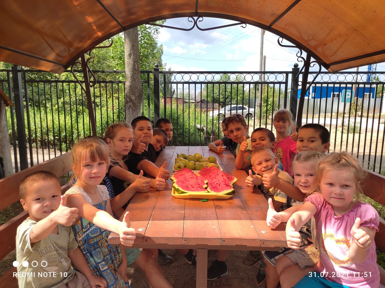 А после завершения игровой программы ребят ждал фруктовый сюрприз:яблоки, груши и сладкий арбуз.